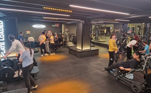 Durante la visita al Gimnasio Grandmontagne los alumnos divididos en dos grupos, aprendieron a manejar el equipamiento de máquinas de discos y las máquinas con poleas, así como a manejar parámetros de volumen e intensidad para los entrenamientos y a posteriori durante la siguiente hora, pudieron poner en práctica actividades dirigidas como: bodycombat y bodypump.